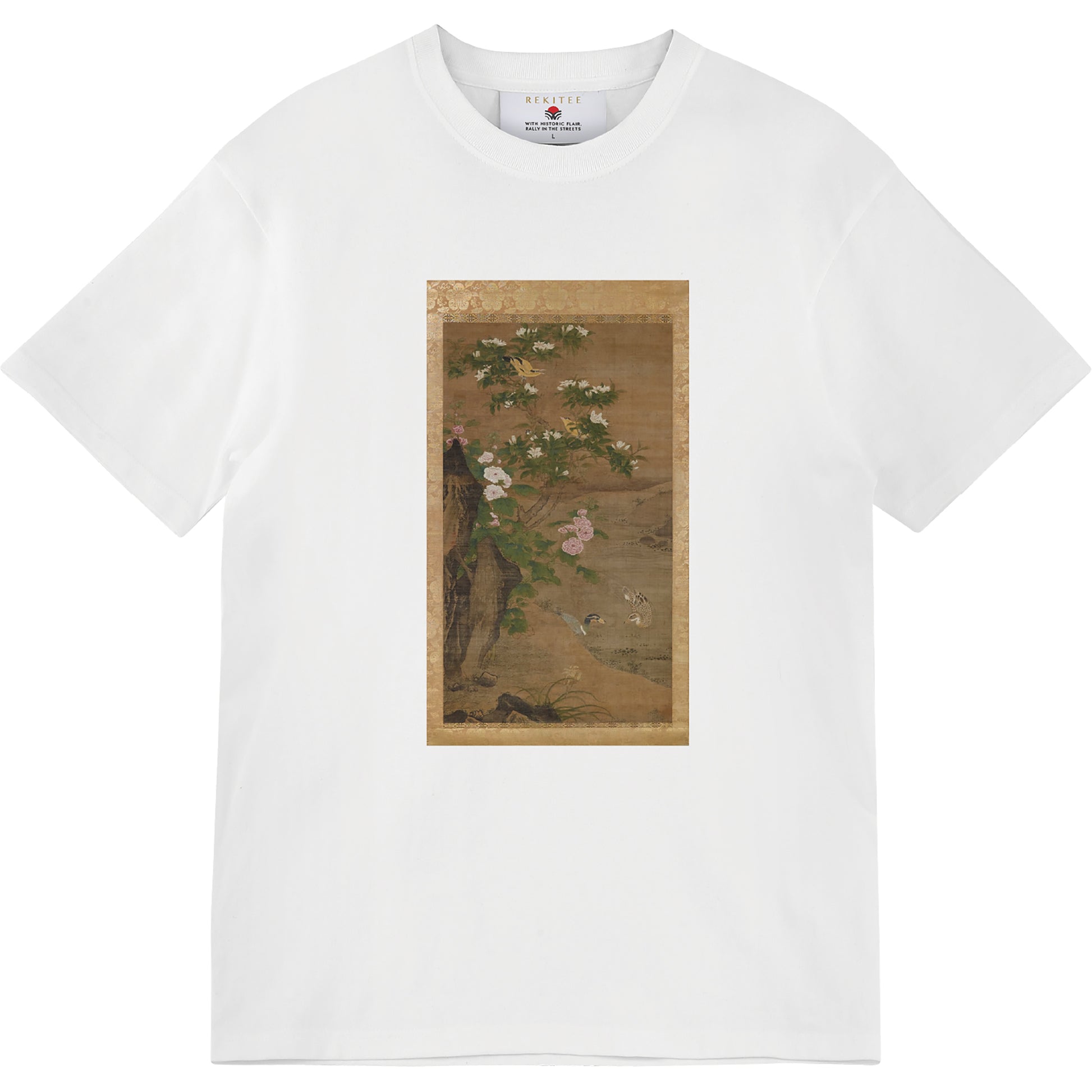 This work represents "Summer" from a four-panel series themed on the four seasons. Set in a garden with distinctive rocks, it features blooming gardenias, daylilies, and hollyhocks, along with vivid depictions of wild birds such as ducks, black-naped orioles and titmice. Considered Lü Ji’s greatest masterpiece, it also influenced Japanese art from the Muromachi period onward.