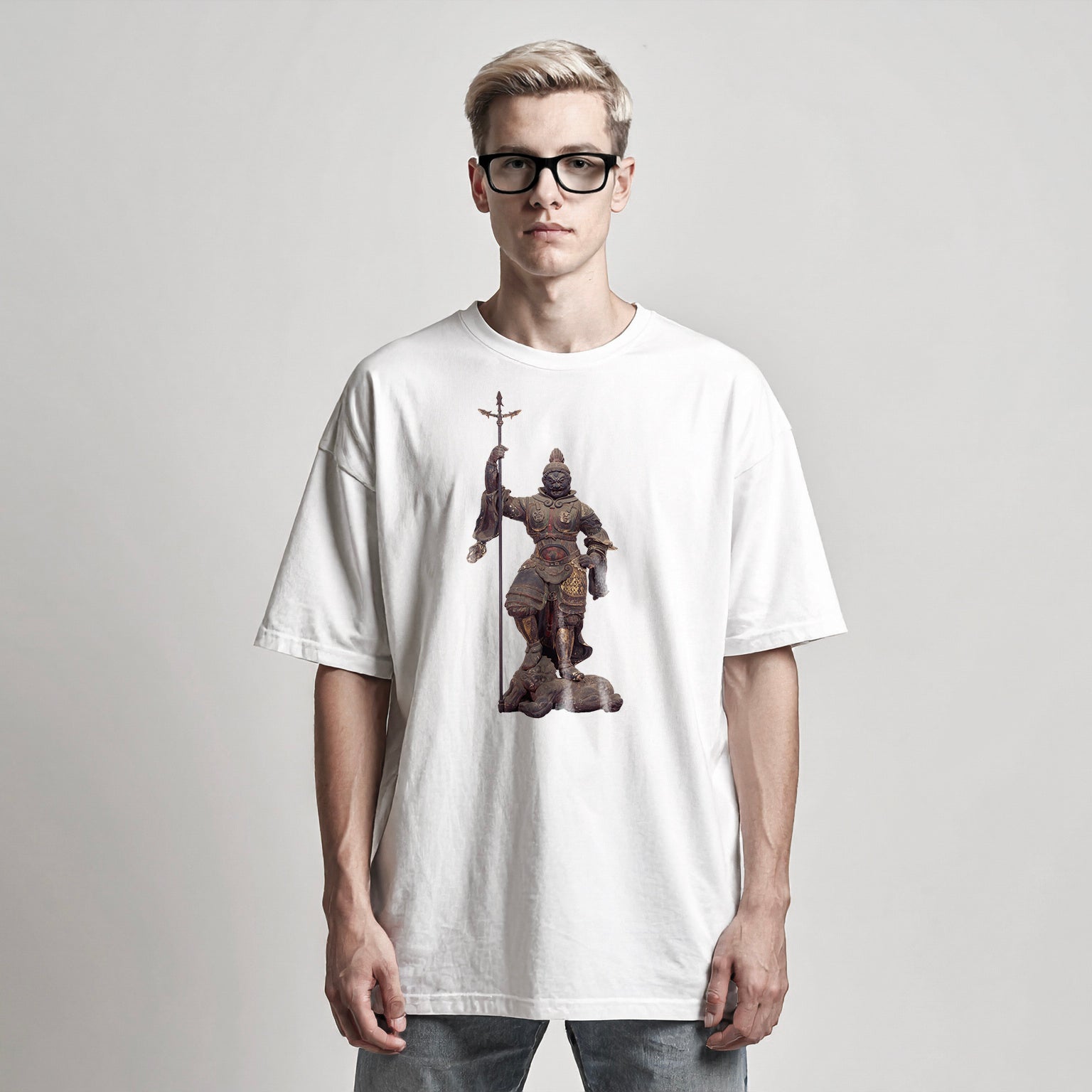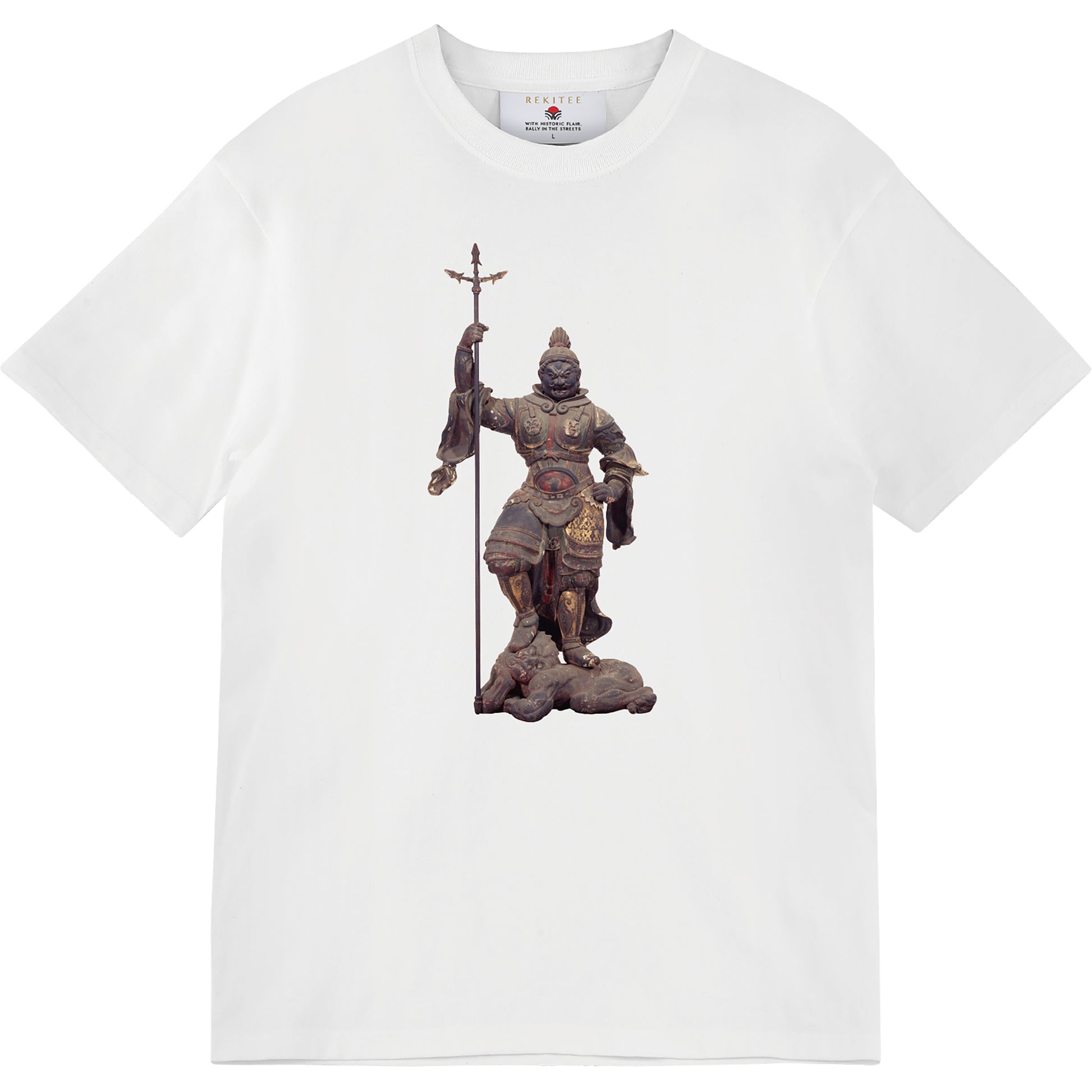 Zōchō-ten is one of the Four Heavenly Kings and the guardian deity of the south. He protects the south side of Mount Sumeru, which is considered to be at the center of the universe in Buddhist cosmology. Placed on the left of the principal buddha worshipped in Buddhist temples, Zōchō-ten typically looks like a Tang dynasty Chinese warlord with red skin and weapons in its hands.